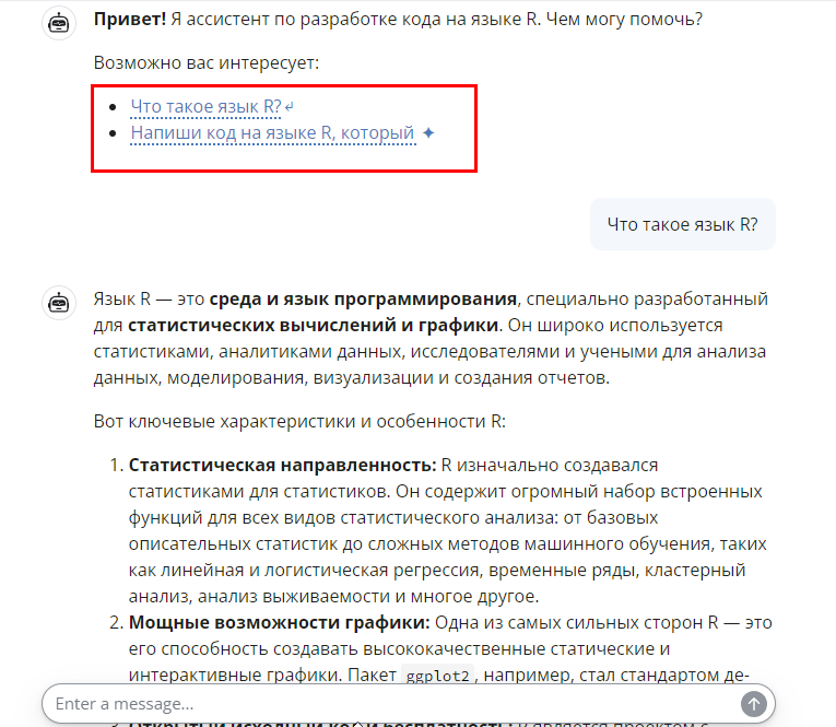messages = "**Привет!** Я ассистент по разработке кода на языке R. Чем могу помочь?",