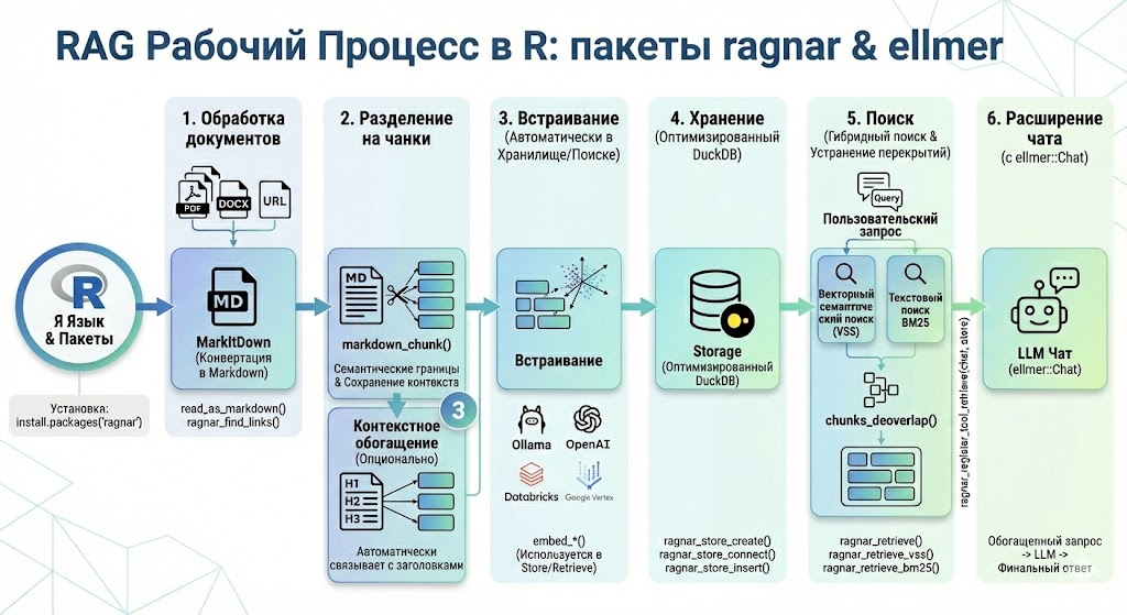В этом уроке мы с вами будем разбираться с пакетом ragnar, о котором ранее в этом курсе ещё не упоминалось. ragnar имеет в арсенале весь необходимый функционал для реализации RAG подхода.
